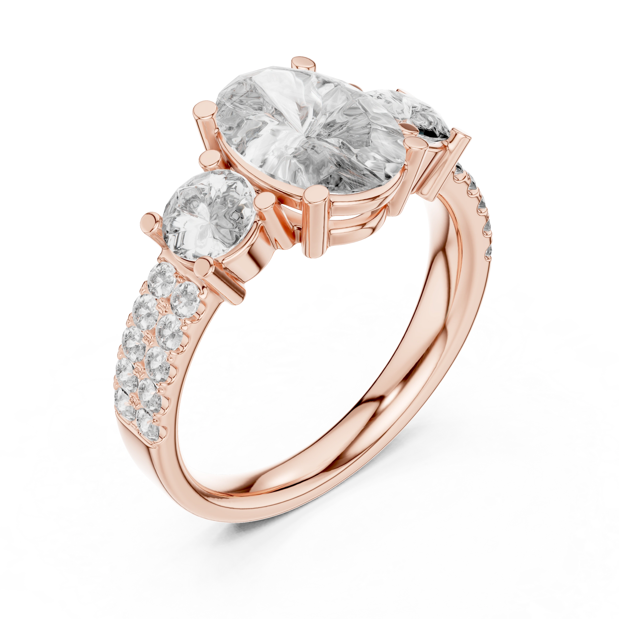 Where subtle sparkle meets classic form. This collection features centerpieces flanked by delicate side stones — adding depth, brilliance, and a touch of refined drama. Designed for those who appreciate the art of quiet detail.